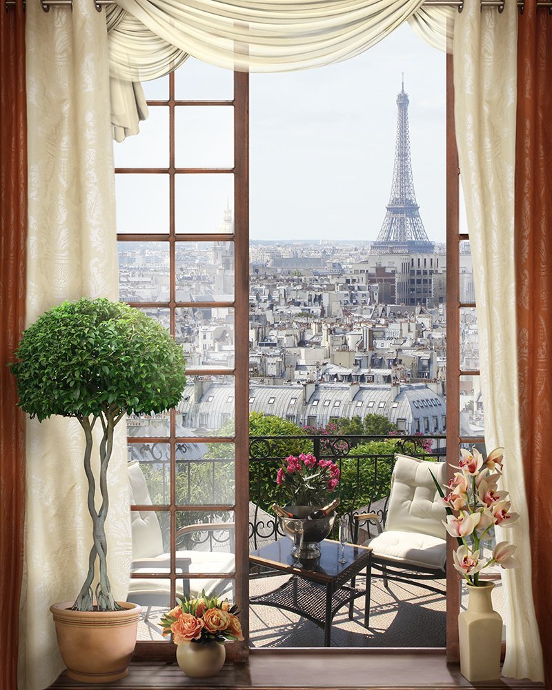 ![Фотообои окно с видом]()
