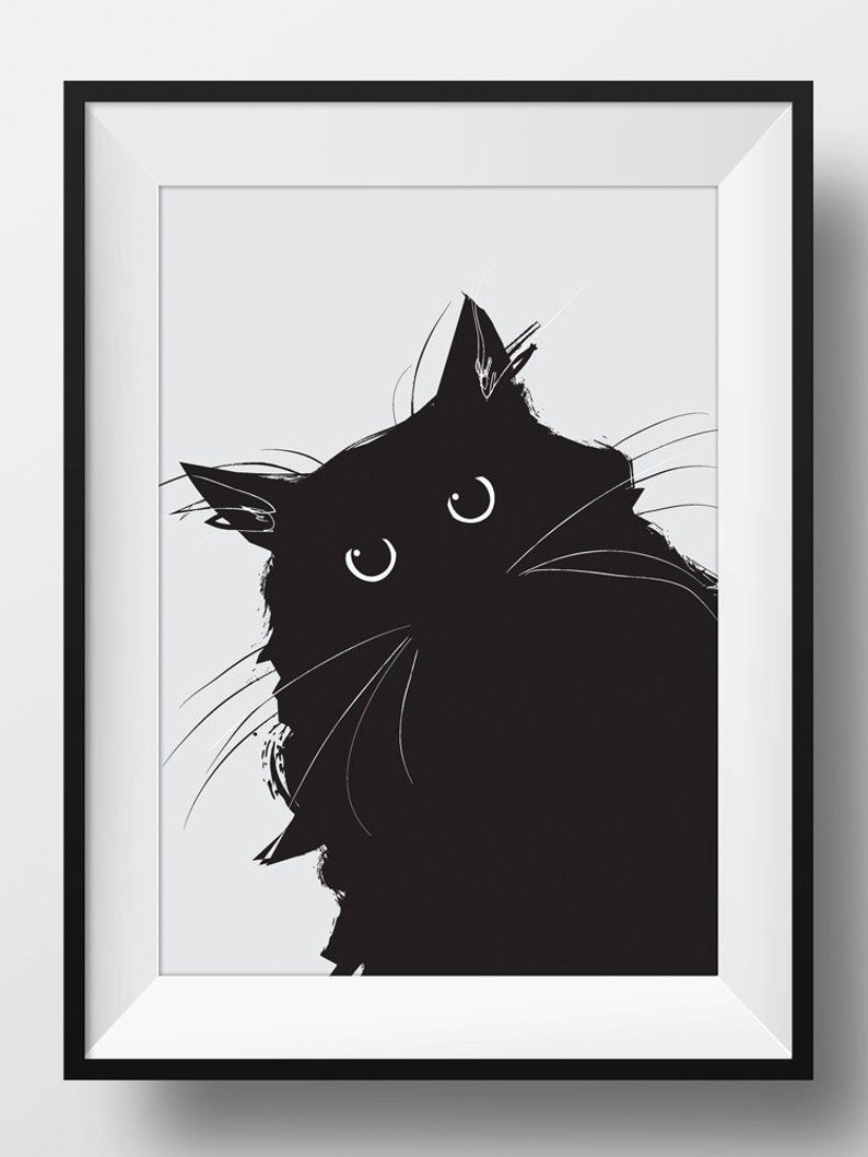 ![Черно белые постеры на стену кот]()