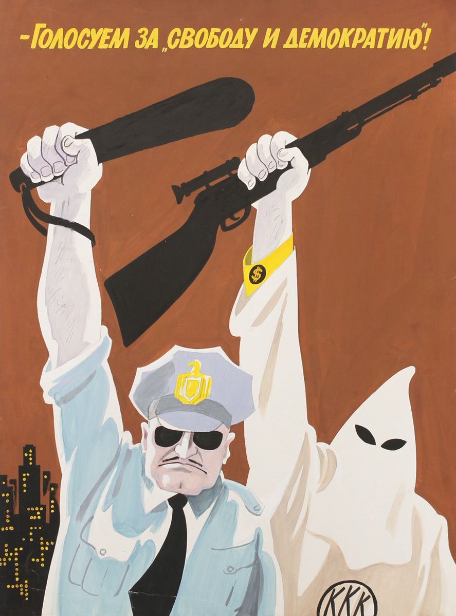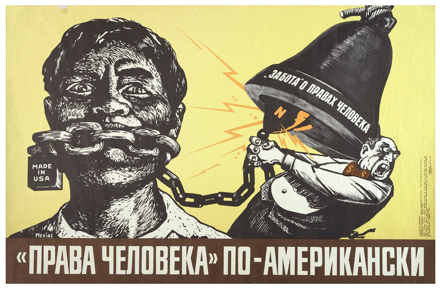 ![Антиамериканские плакаты СССР времен холодной войны]()