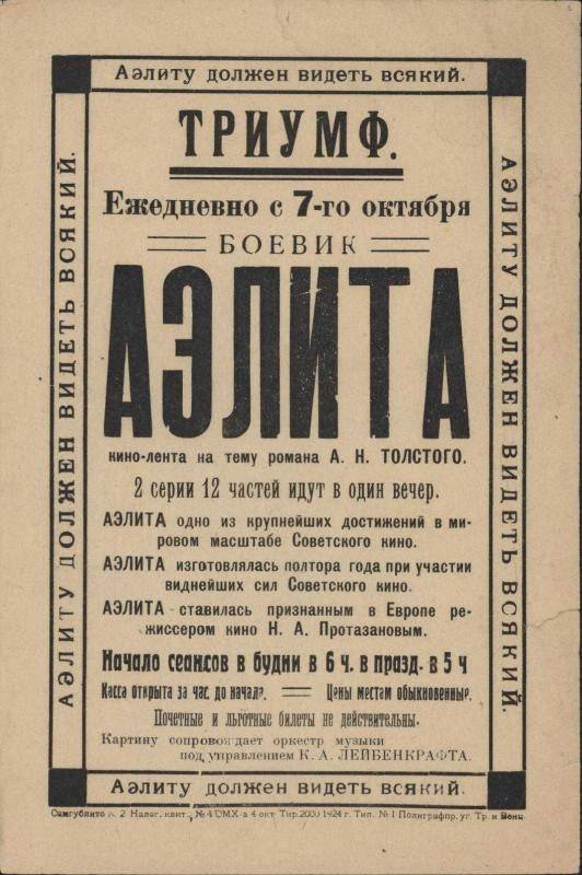![Аэлита фильм 1924 афиша]()