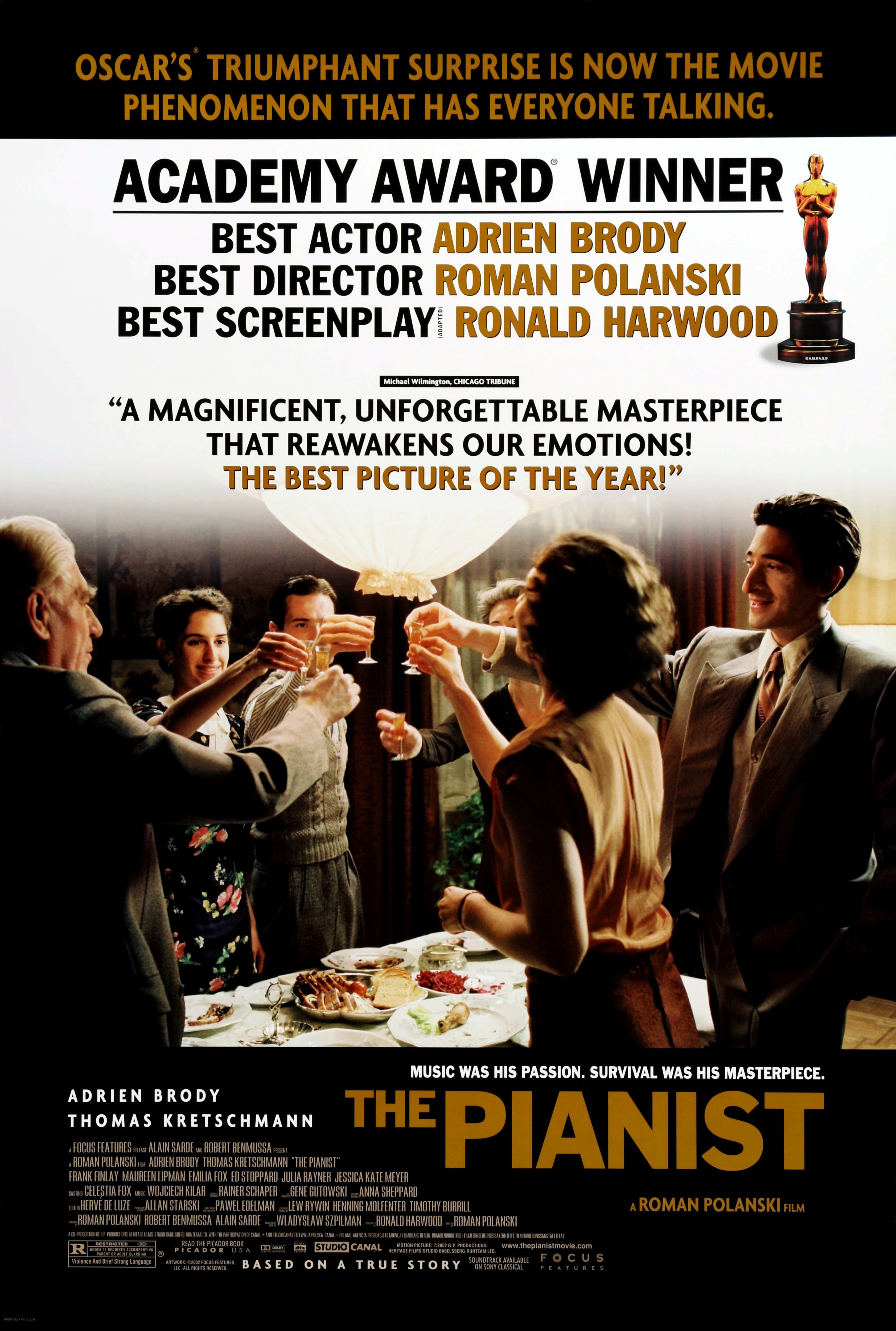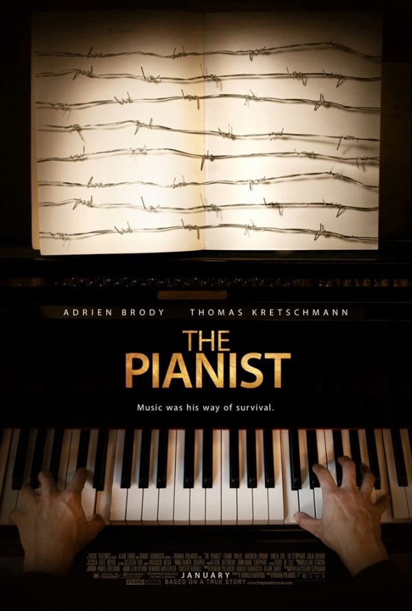 В постере "Пианист" представлена уникальная и захватывающая история о талантливом музыканте, чья жизнь меняется во время Второй мировой войны. Фильм, основанный на реальных событиях и романе Владислава Шпилмана, погружает зрителя в атмосферу войны и страдания, но также демонстрирует силу искусства и духовную выносливость человека. Главный герой, исполненный мастерски Адриэном Броуди, преодолевает все трудности и опасности, чтобы сохранить свою любовь к музыке и выразить себя через нее. "Пианист" - это потрясающий фильм о выживании и надежде, который запомнится зрителям навсегда своей искренностью и эмоциональной силой.