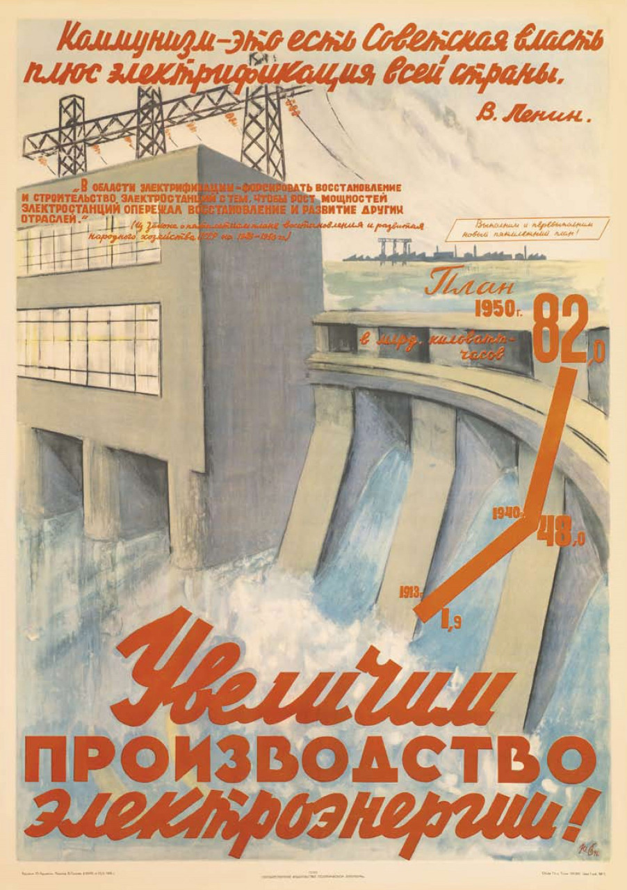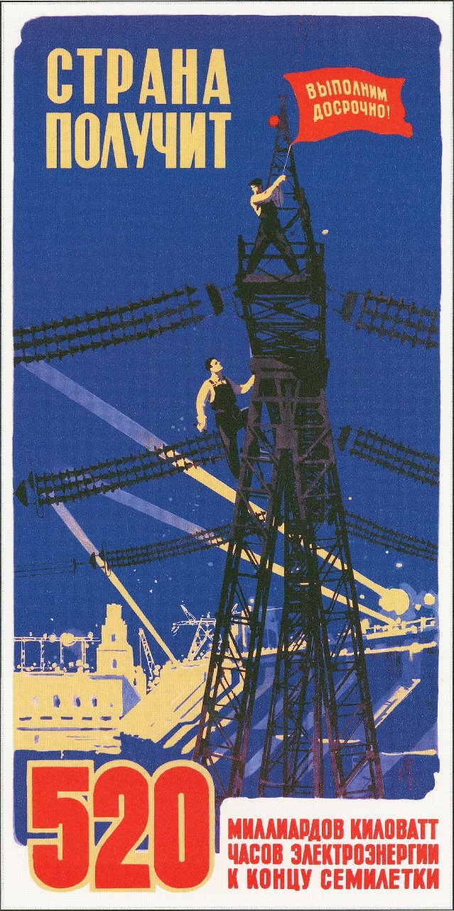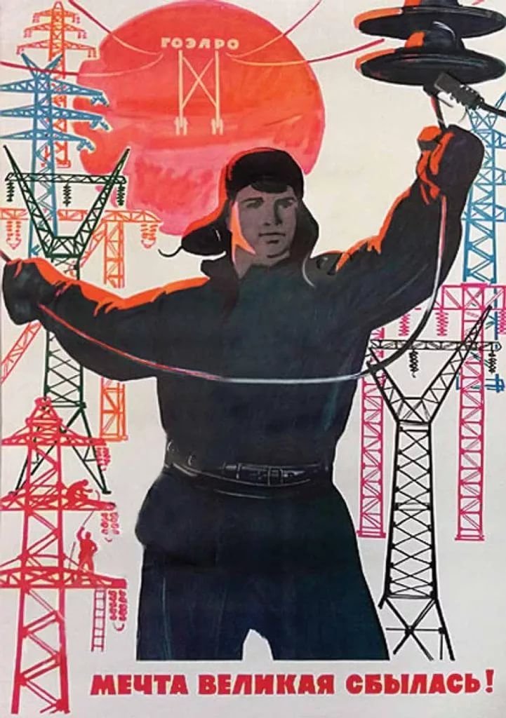 ![Советский плакат Энергетиков ГЭС]()
