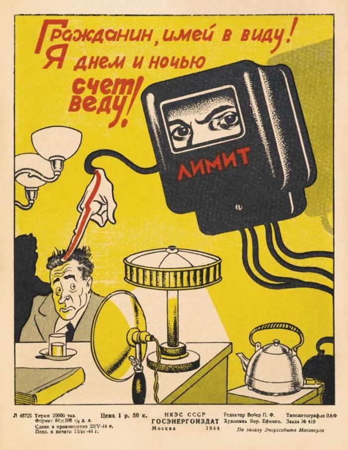Советские плакаты экономии электроэнергии