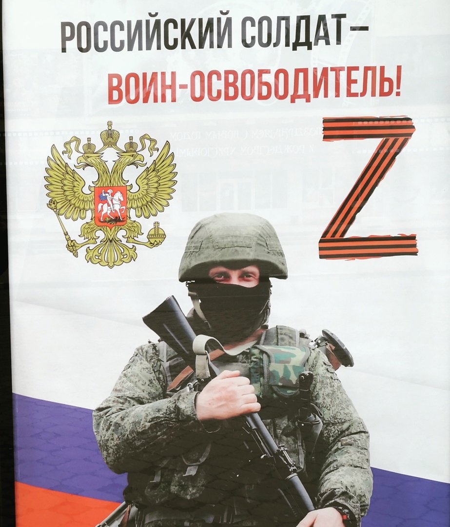 ![Плакат в поддержку военных России]()