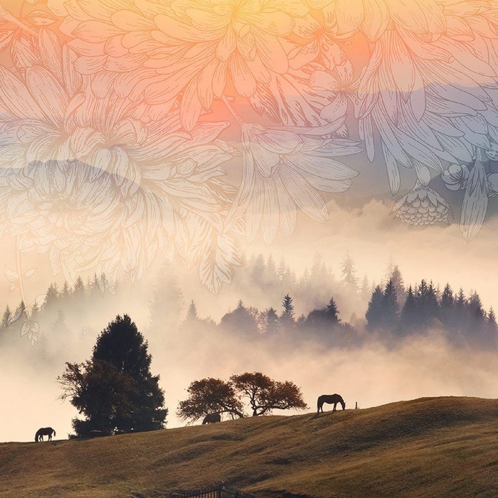 Природа сепия с туманом
