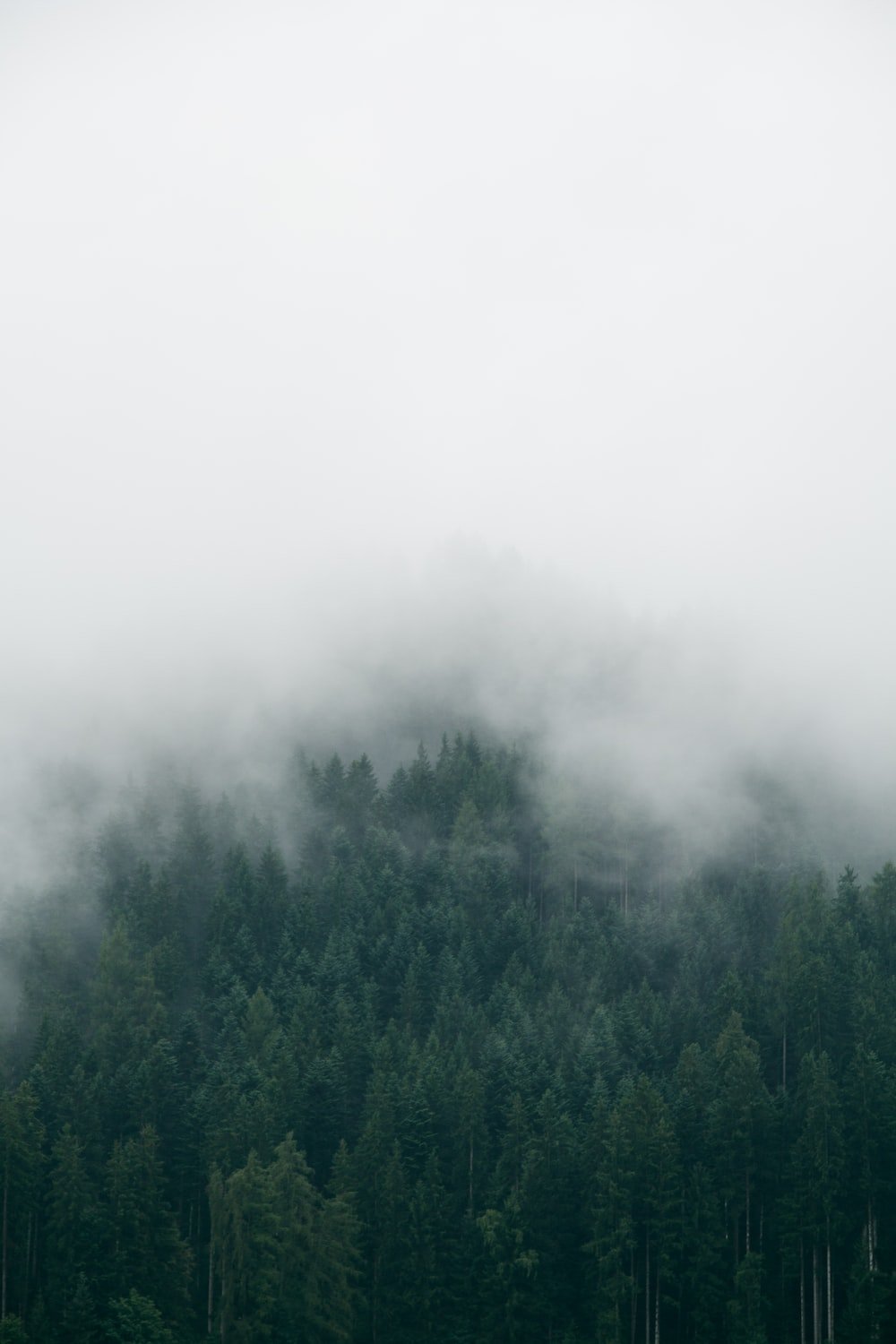 ![Еловый лес в тумане]()