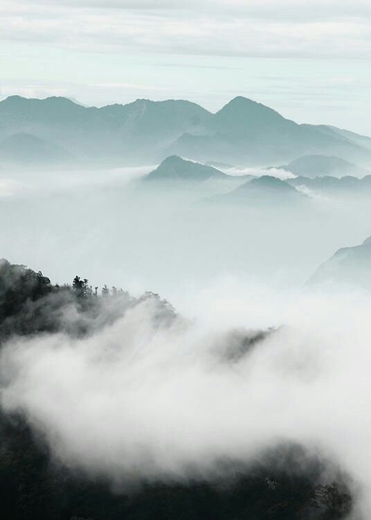 ![Картина горы в тумане]()