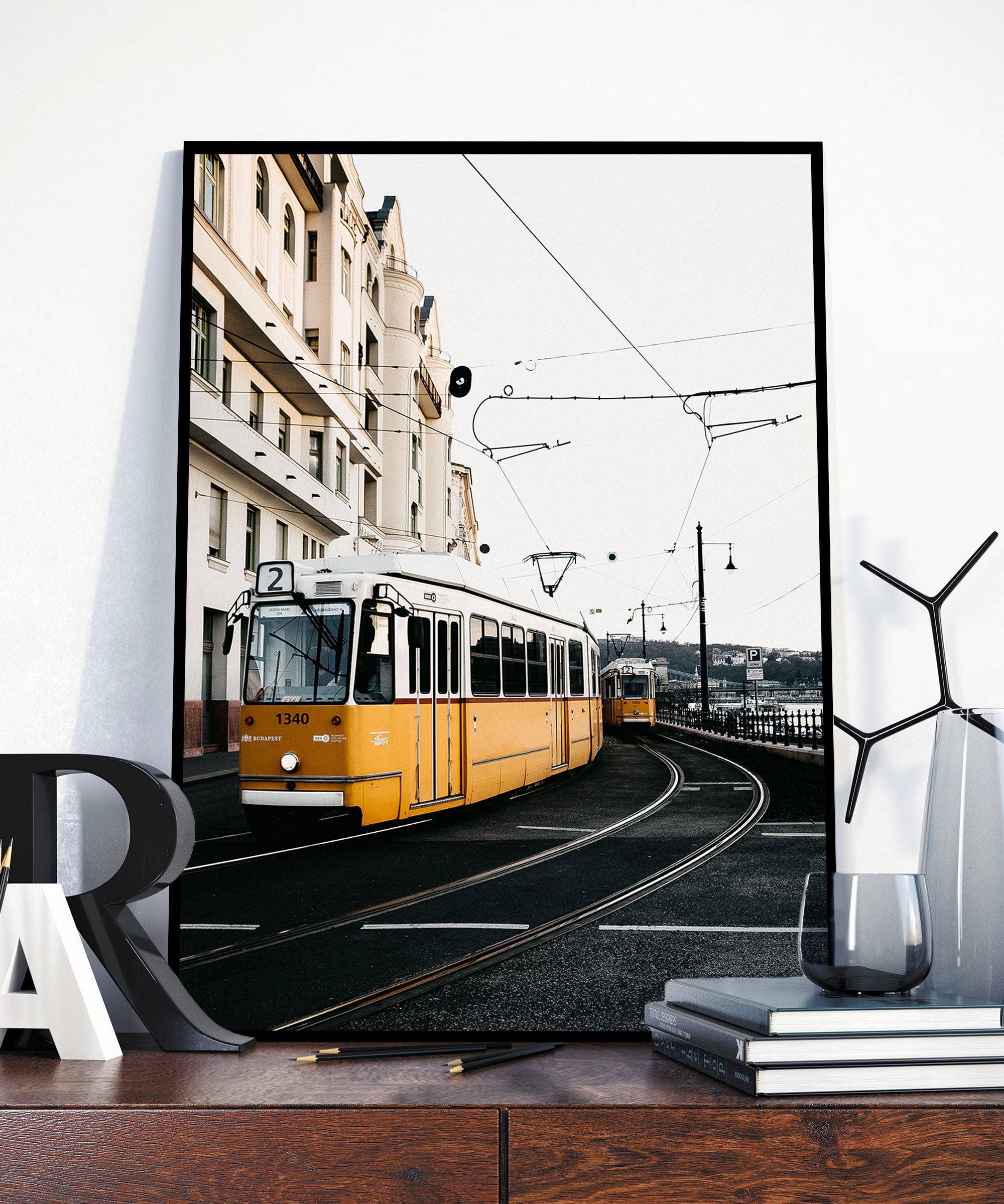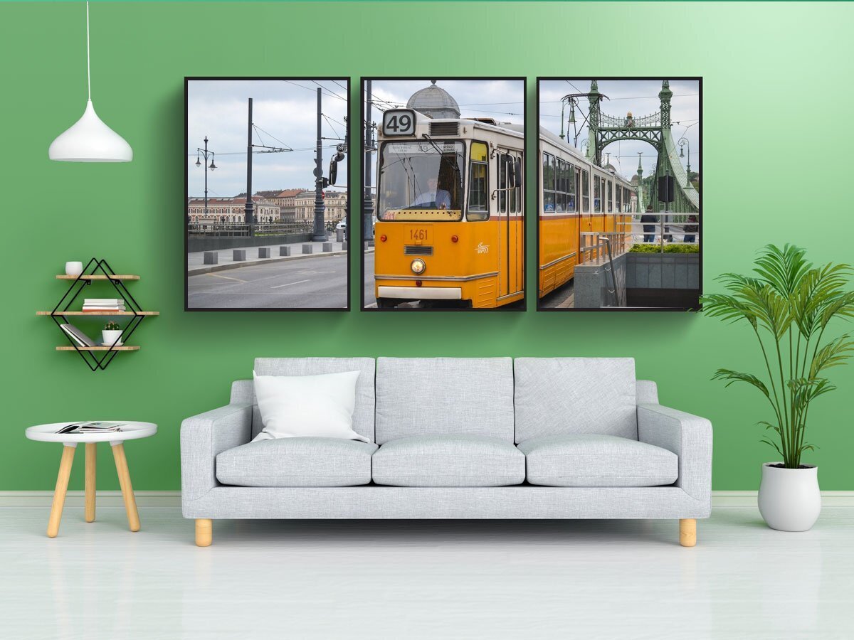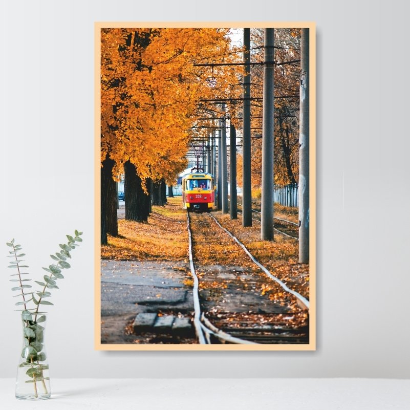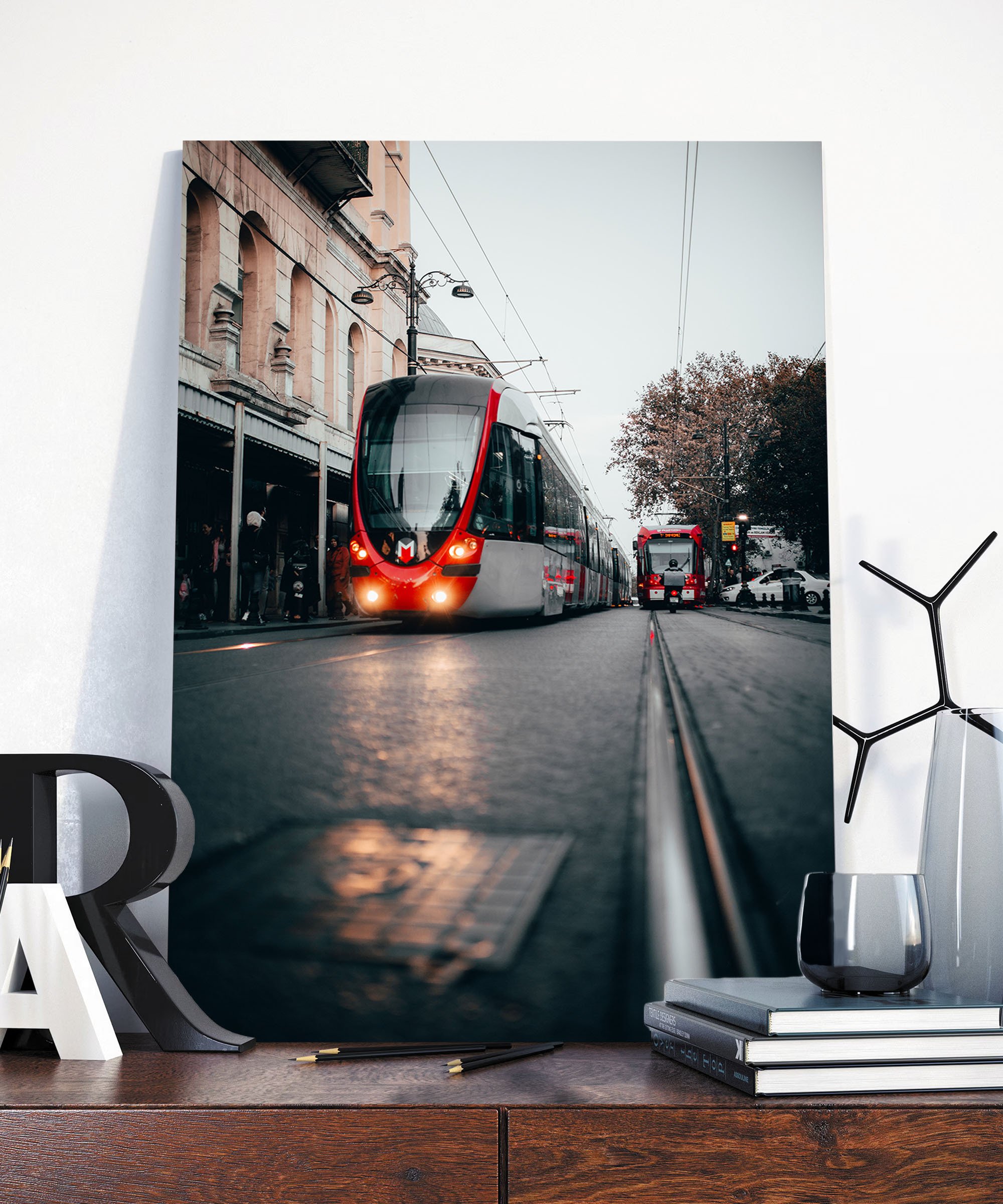 ![Постер в интерьере с картиной красный трамвай]()