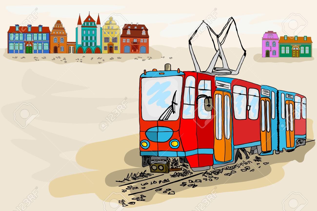 ![Трамвай рисунок для детей]()