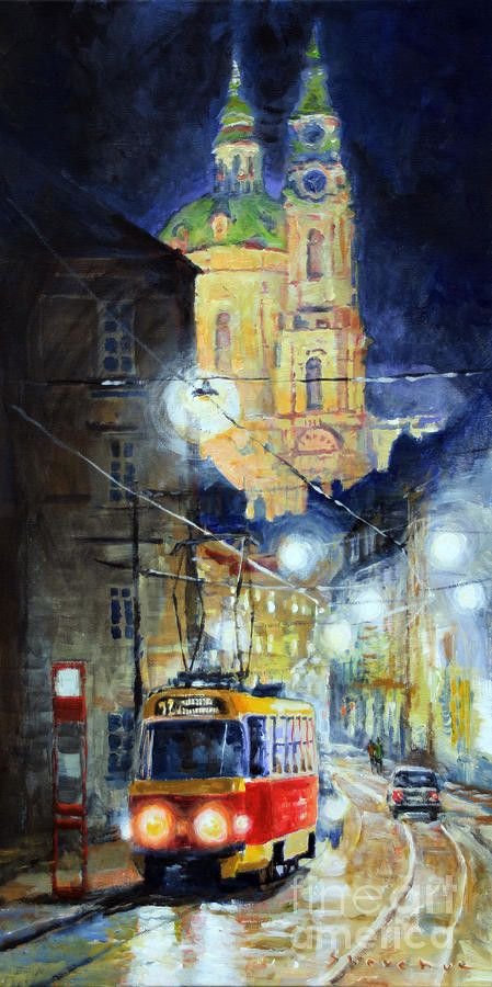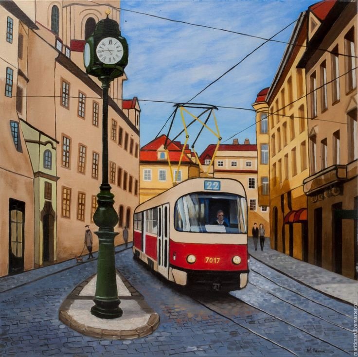 ![Трамвай в Праге маслом]()