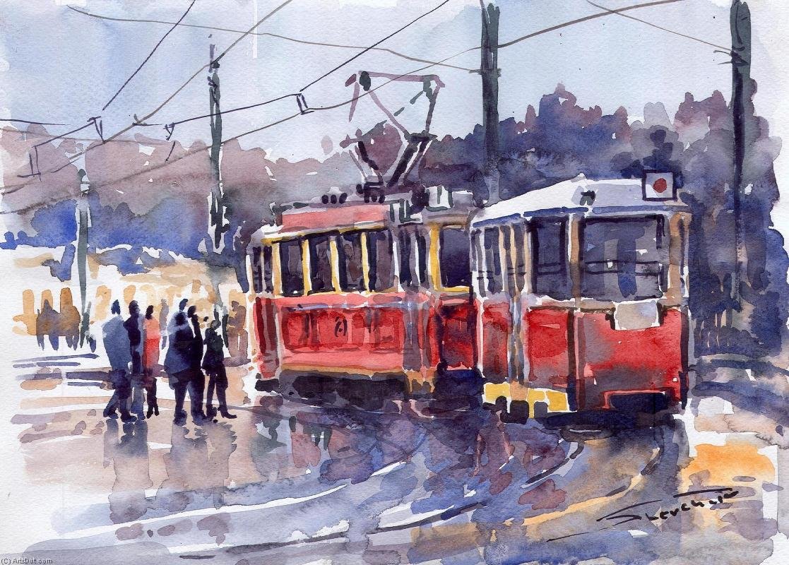 ![Трамвай Юрий Шевчук акварель]()