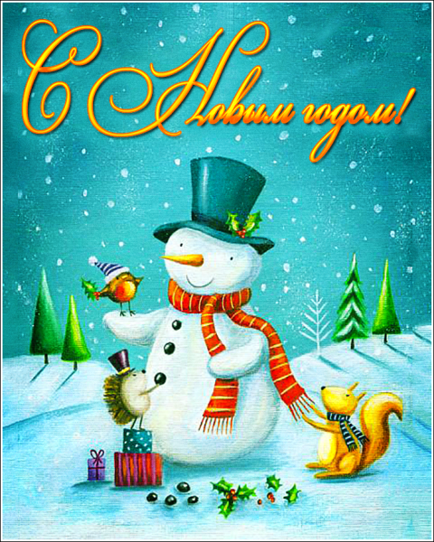 ![Открытка с новым годом Снеговик]()