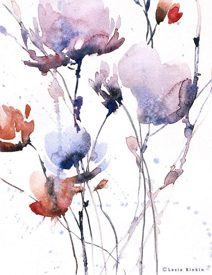 ![Стилизованные цветы акварелью]()