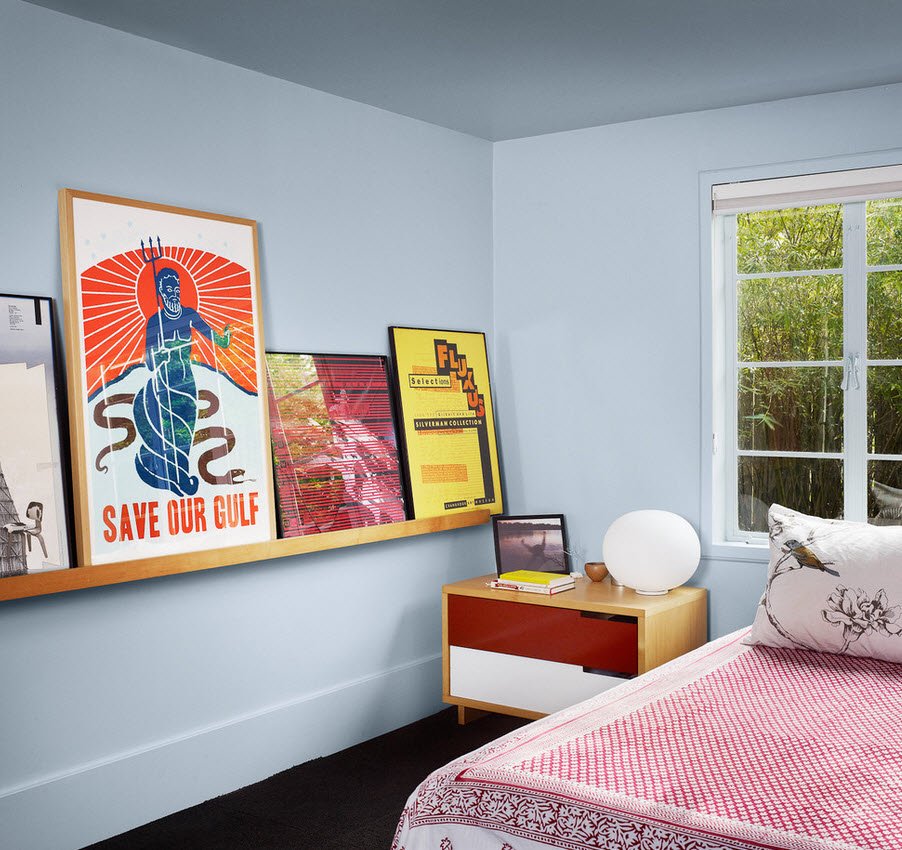 ![Интерьер комнаты с постерами]()
