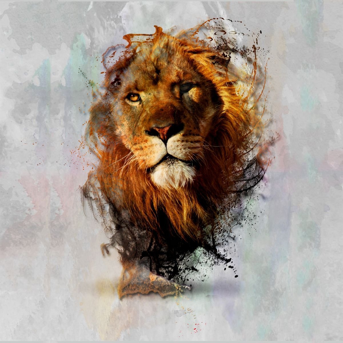 ![Лев красками]()