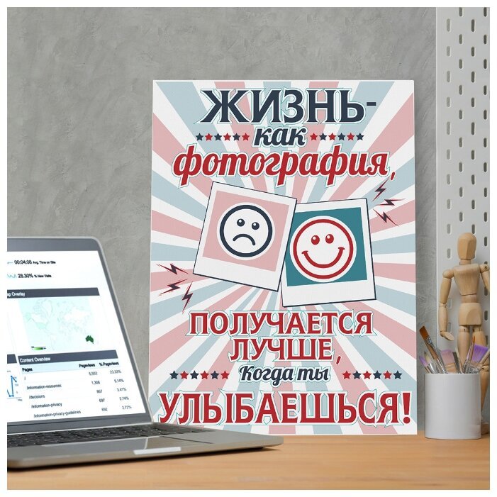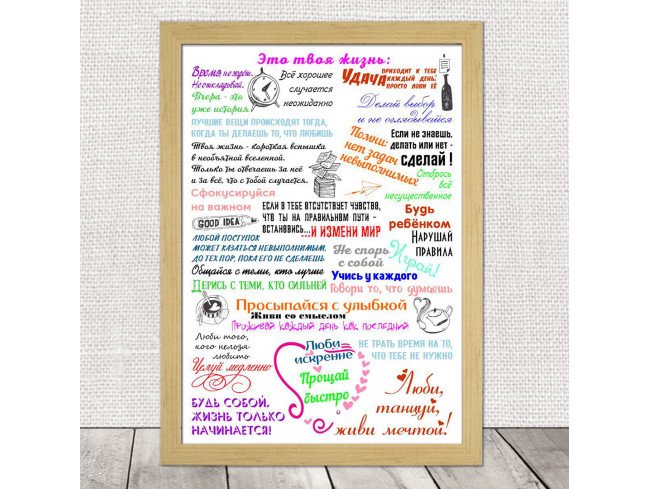 Постер "Жизнь" - это вдохновляющая и мотивирующая работа искусства, которая заставляет задуматься о смысле нашего существования. Он показывает разнообразие и красоту жизни во всех ее проявлениях, отражая радость, успехи, испытания и рост. Каждый элемент на постере тщательно подобран, чтобы передать эмоциональное и глубокое состояние, вызывая у зрителя желание стремиться к лучшей версии себя. Постер "Жизнь" станет незаменимым спутником на пути к саморазвитию и достижению целей, напоминая о том, что каждый день - новая возможность для проживания полноценной и яркой жизни.