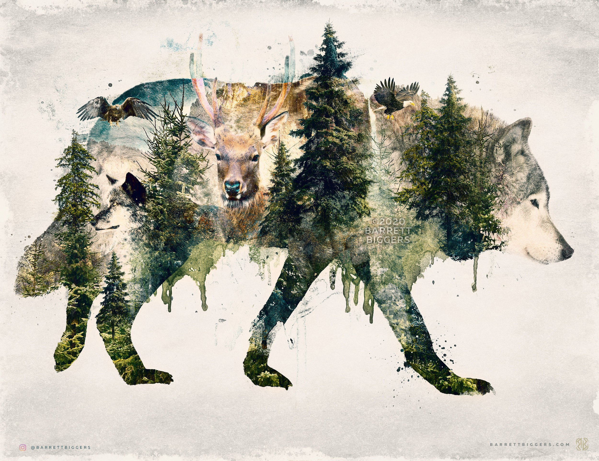 ![Волк в лесу акварель]()