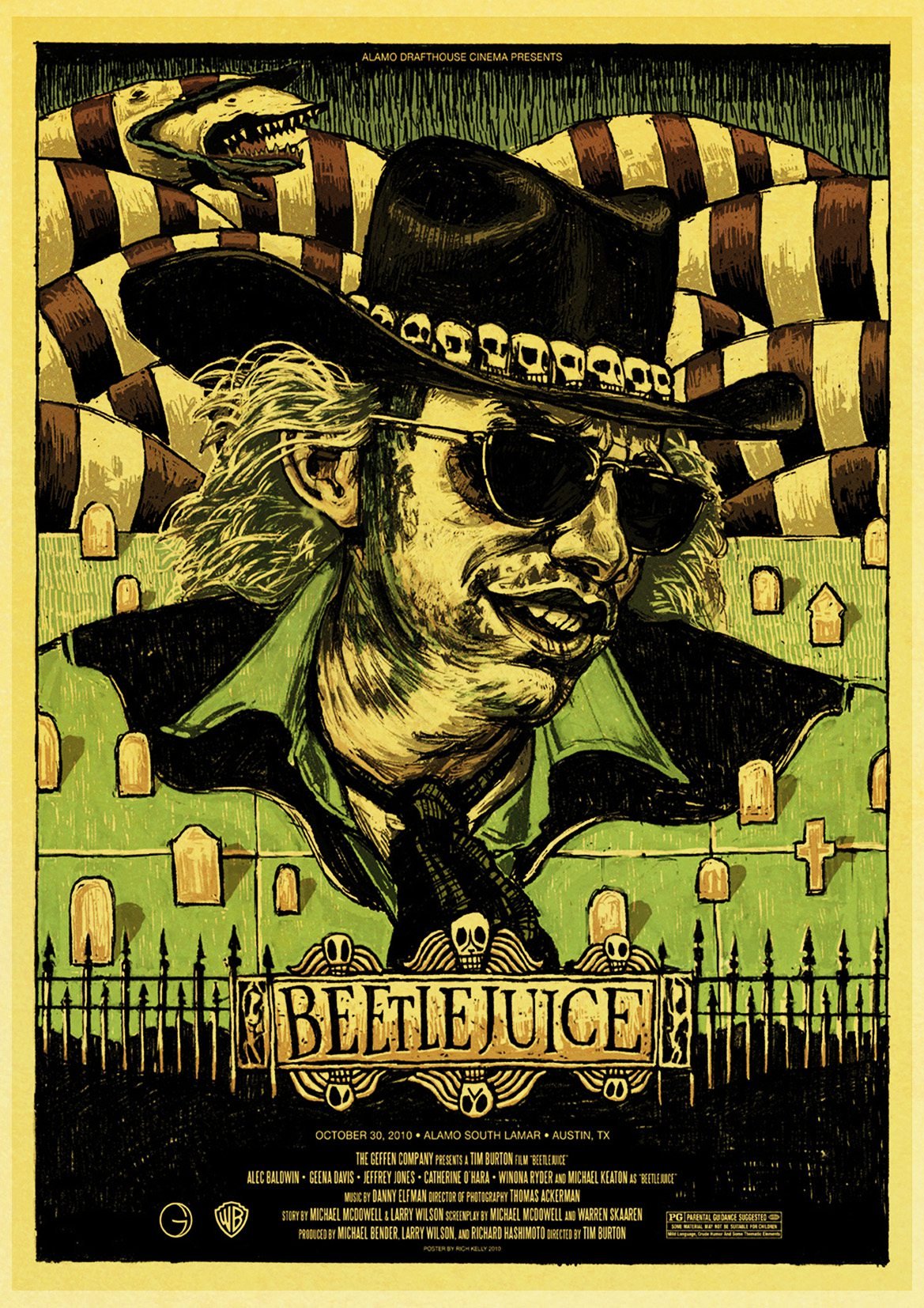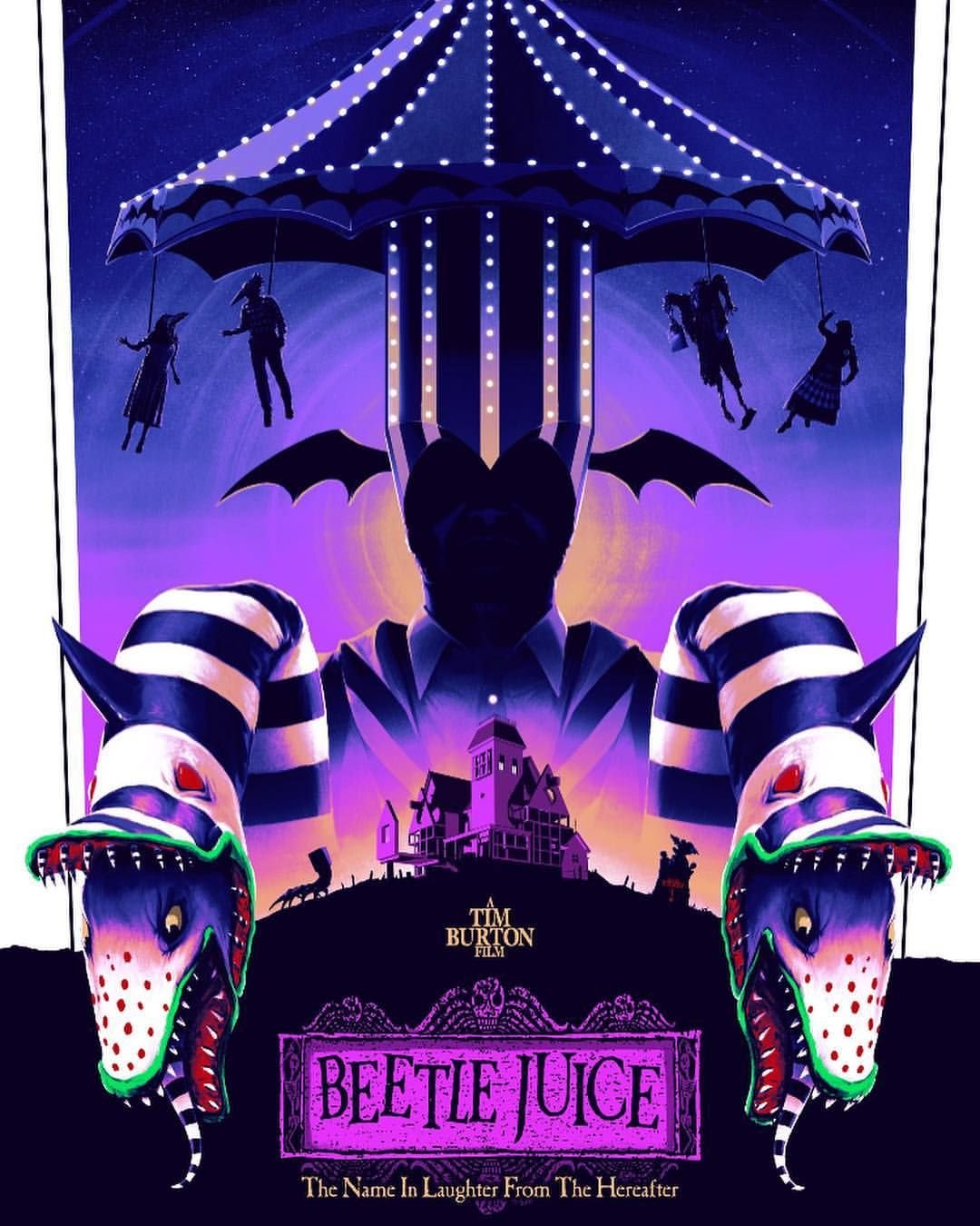 Битлджус - это культовая комедийная фэнтези-фильм Тима Бертона, который вышел в 1988 году. Он рассказывает историю эксцентричного и прожорливого призрака по имени Битлджус, который помогает молодой семье избавиться от нежелательных жильцов в их новом доме. Фильм славится своим оригинальным стилем и забавными персонажами, а также юмором, который покорил сердца зрителей. Постер к фильму яркий и запоминающийся, отражая весь его харизматичный дух и уникальность. Если вы любите комедии с элементами фэнтези и необычной атмосферой, то фильм "Битлджус" обязательно стоит посмотреть.