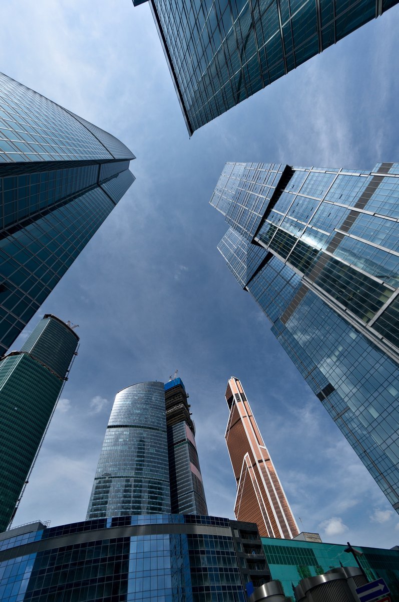 ![Москва Сити снизу вверх]()