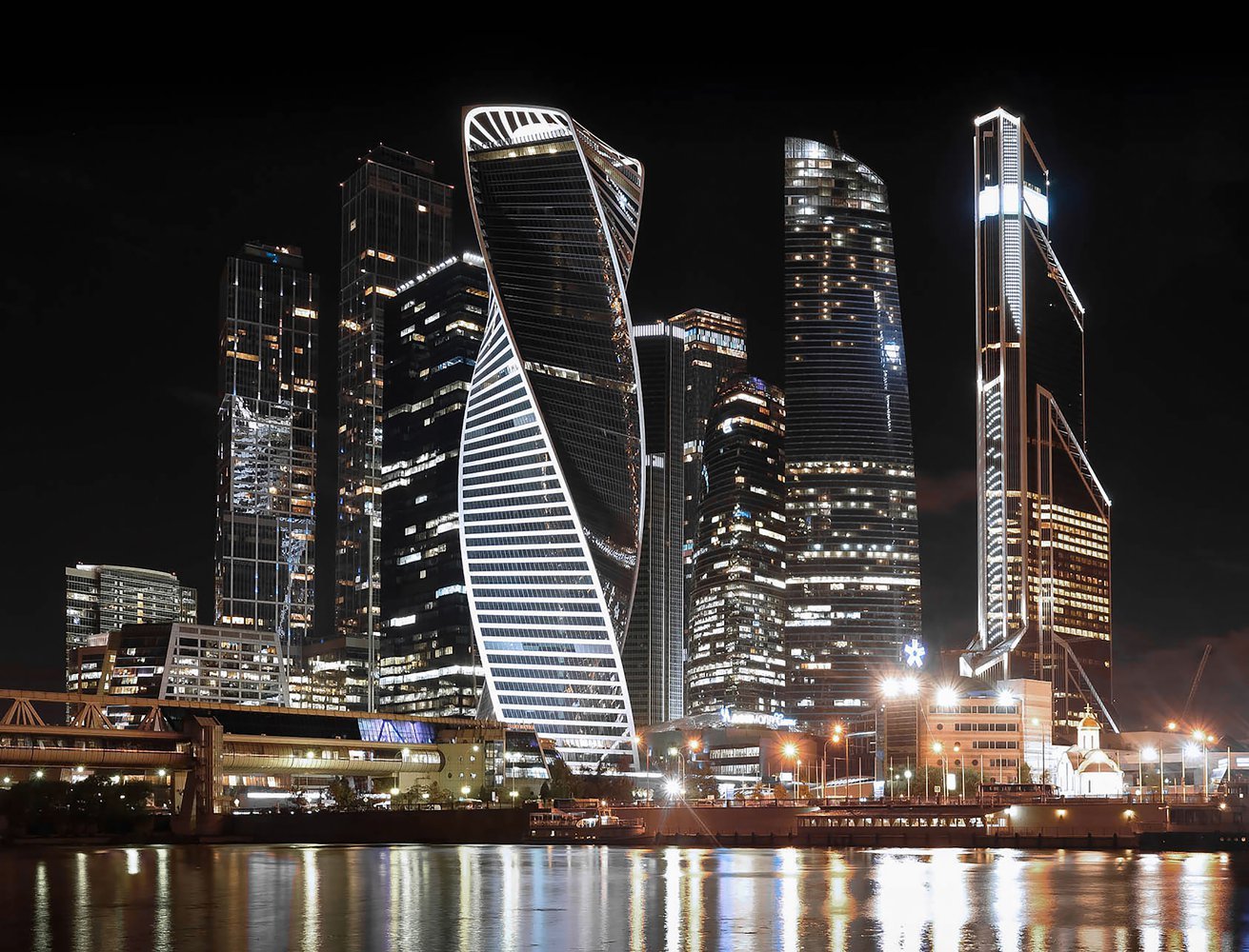 Москоу - Сити, небоскребы, река.