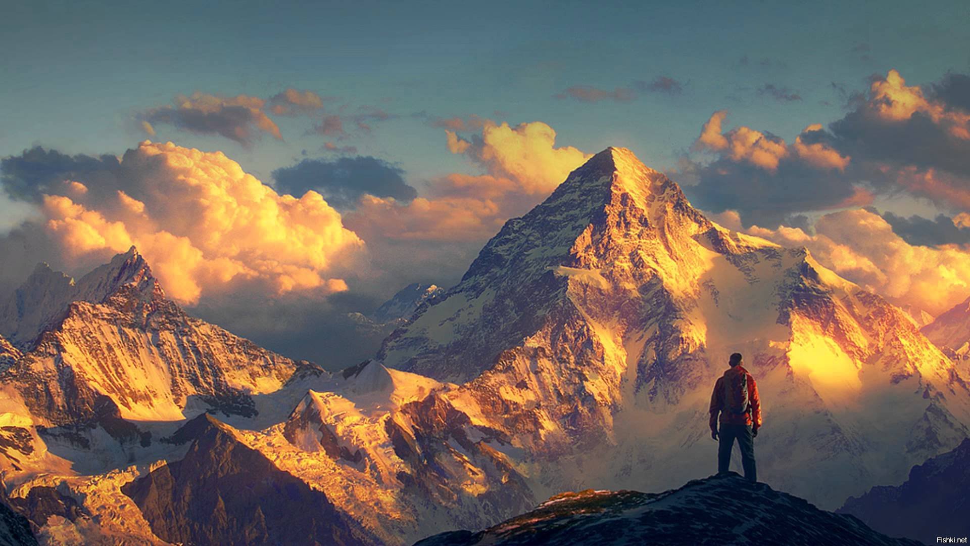 Человек на фоне горы