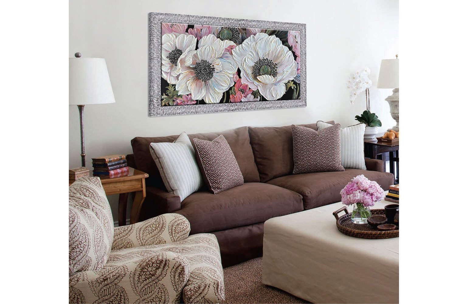 Репродукция в раме с декором 135х75 см анемоны