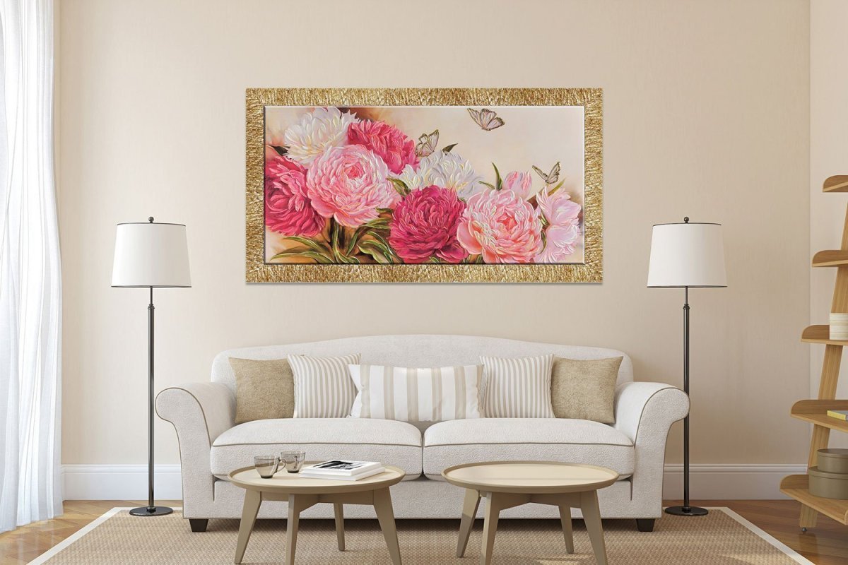 Интерьерная картина пионы с поталью