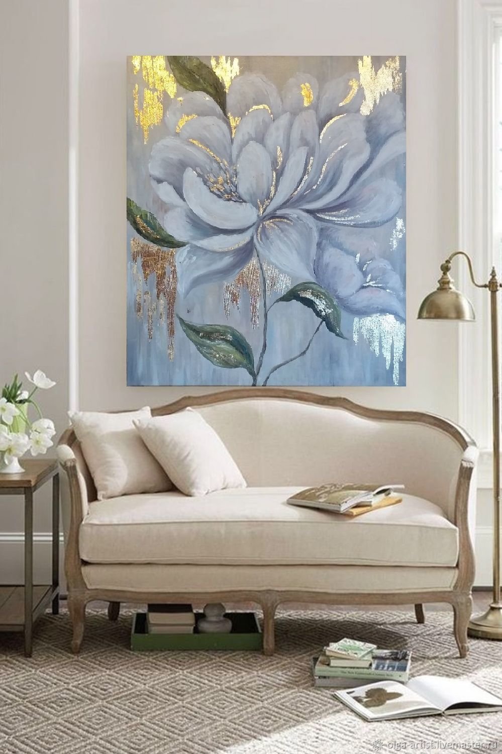 ![Интерьерная картина пионы с поталью]()