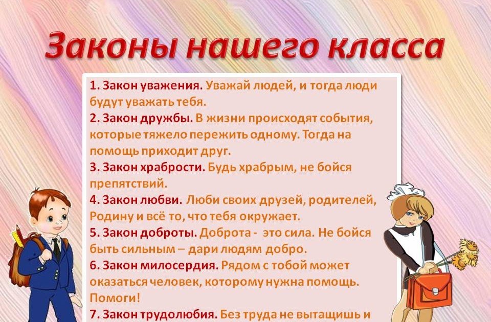 Законы нашего класса для классного уголка