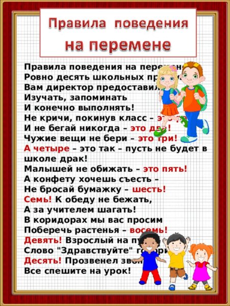 Правила поведения на перемене в школе для начальных классов