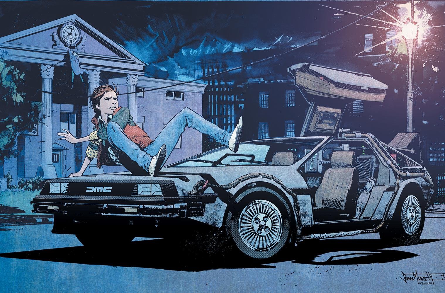 ![Марти Макфлай арт с Делориан]()