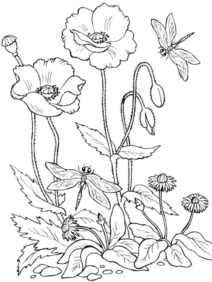 Маки цветы для раскрашивания