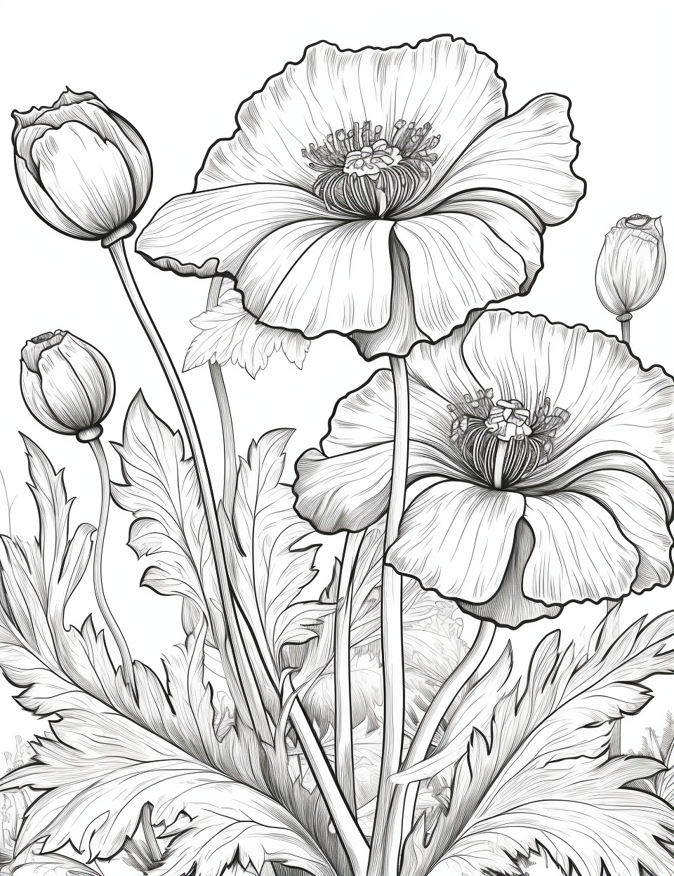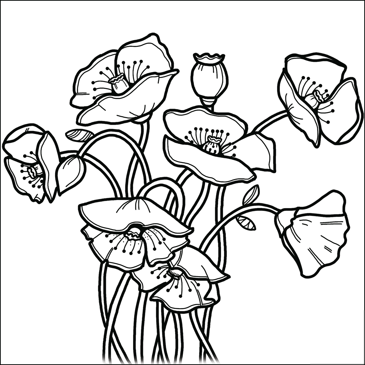 Букет маки раскраска