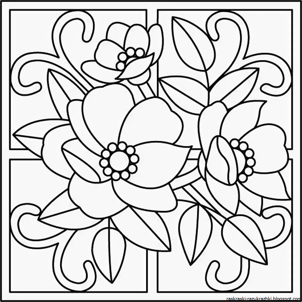 ![Витраж раскраска цветы]()