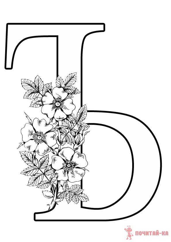 Цветочные буквы русского алфавита для раскрашивания