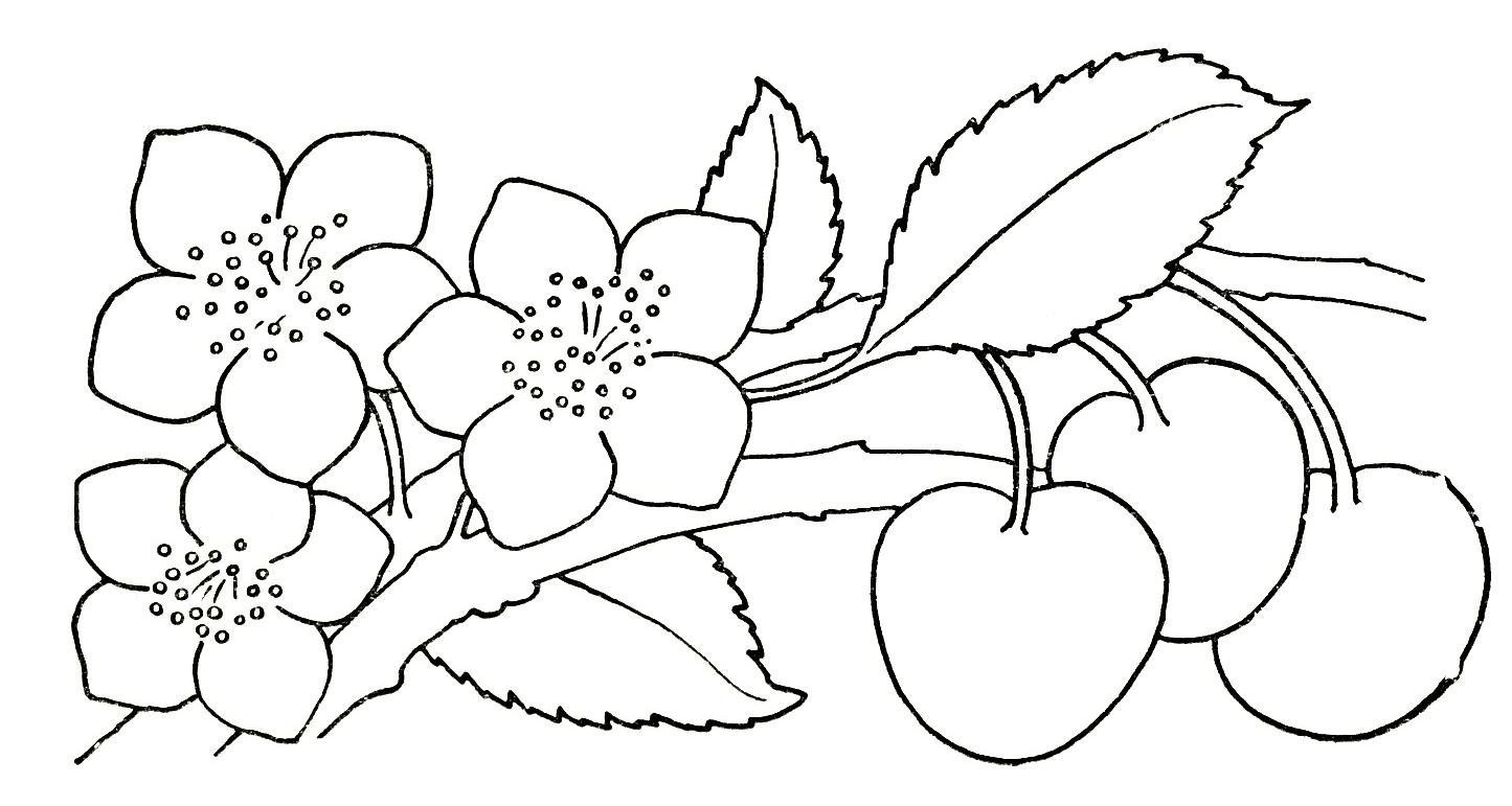 ![Ветка с цветами раскраска]()