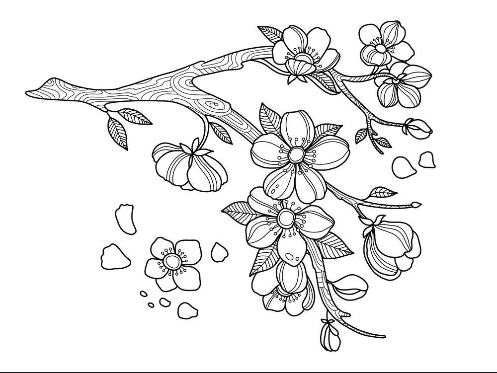 Ветка Сакуры раскраска для детей