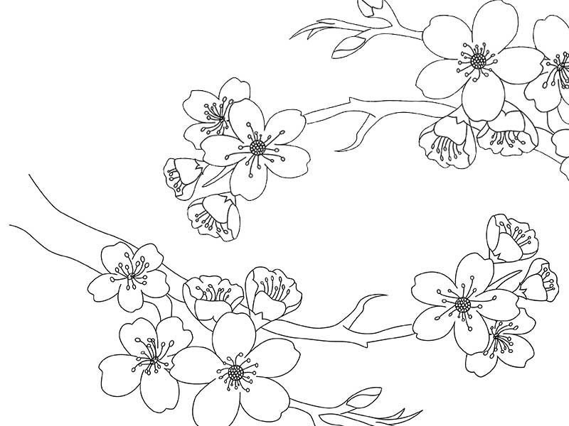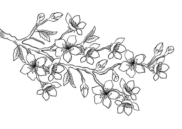Веточка Сакуры раскраска