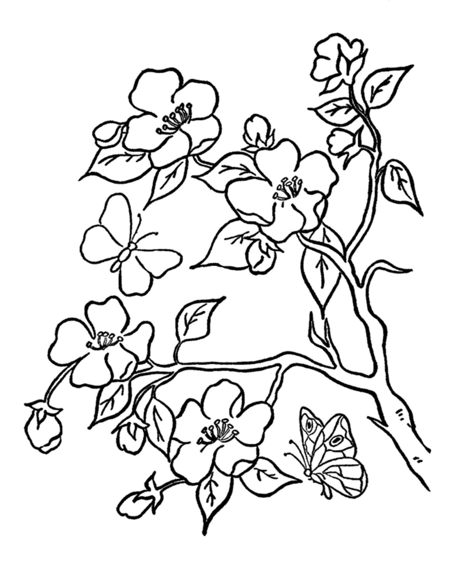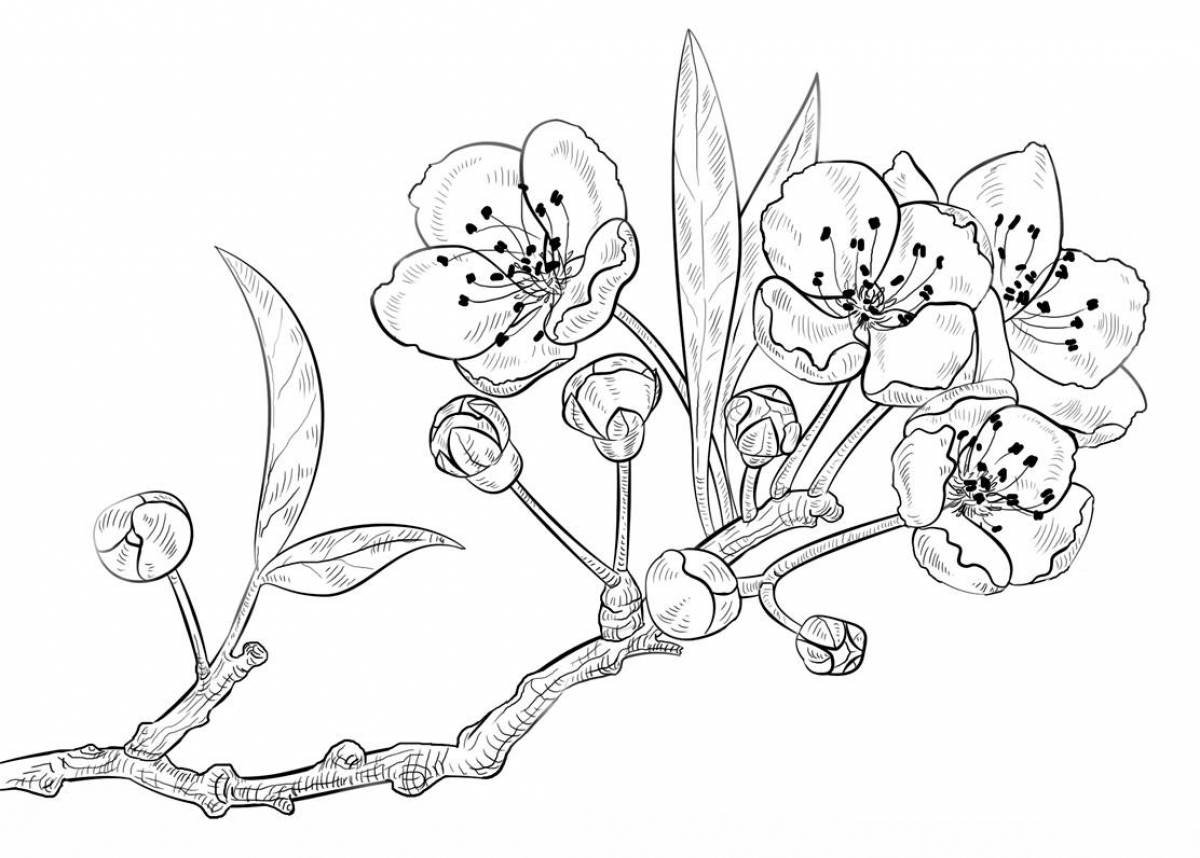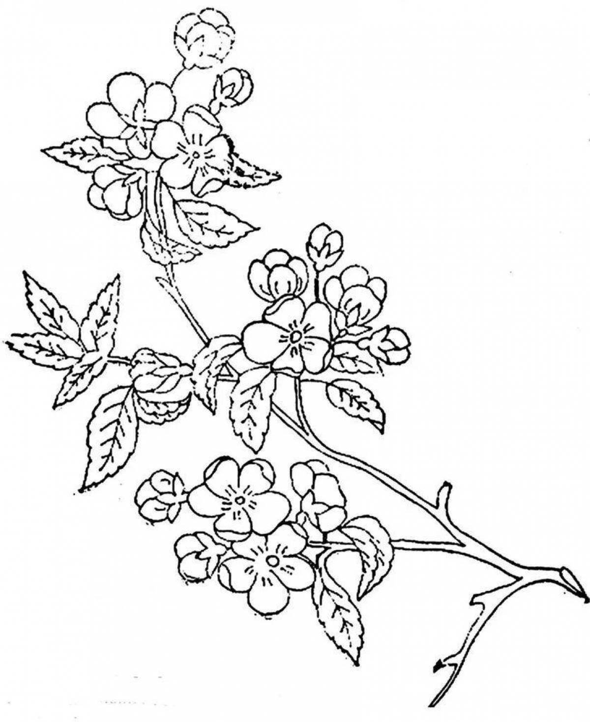 Цветущая ветка яблони раскраска