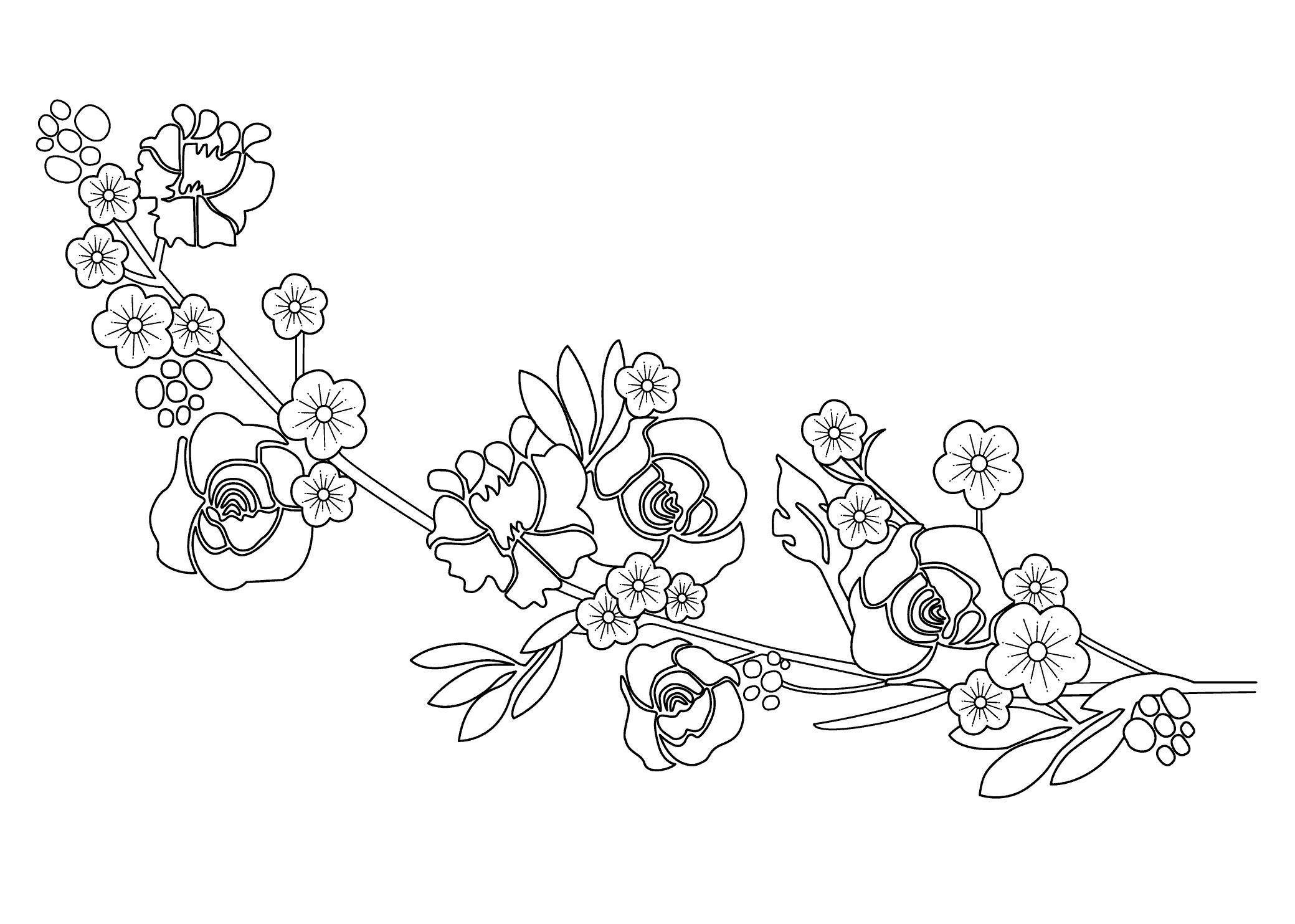 Ветка с цветами раскраска