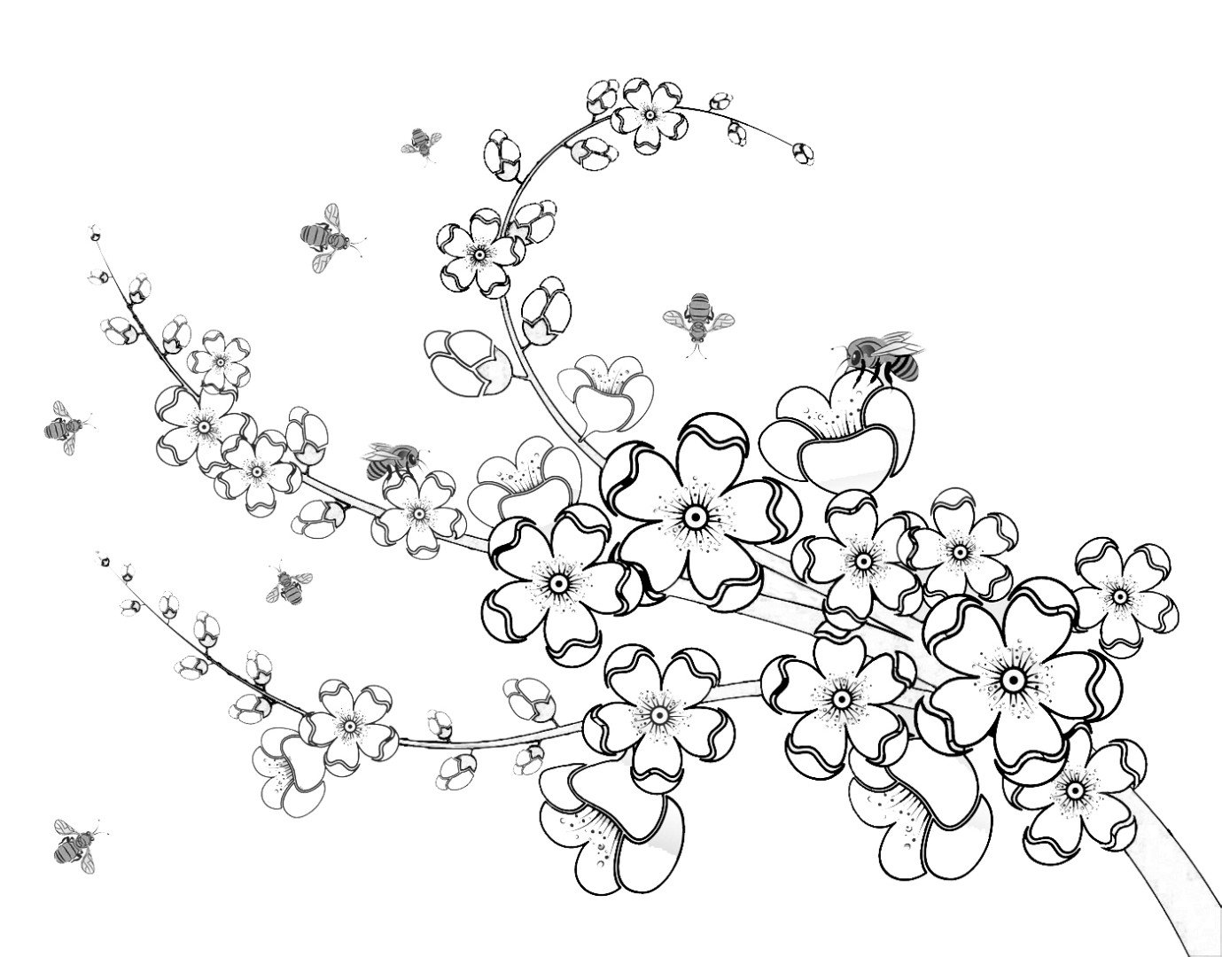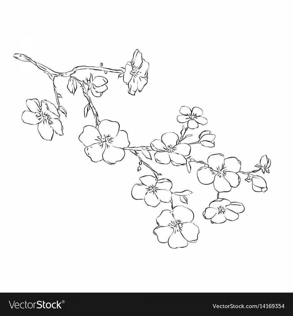 Ветка Сакуры с цветами раскраска