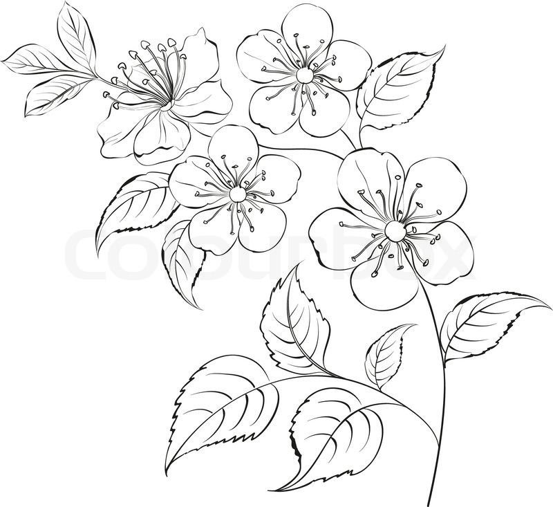 ![Ветка с цветами рисунок]()