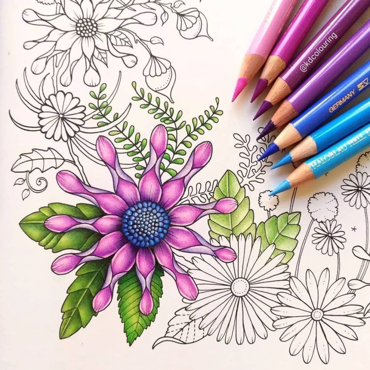 ![Цветы Раскрашенные цветными карандашами]()