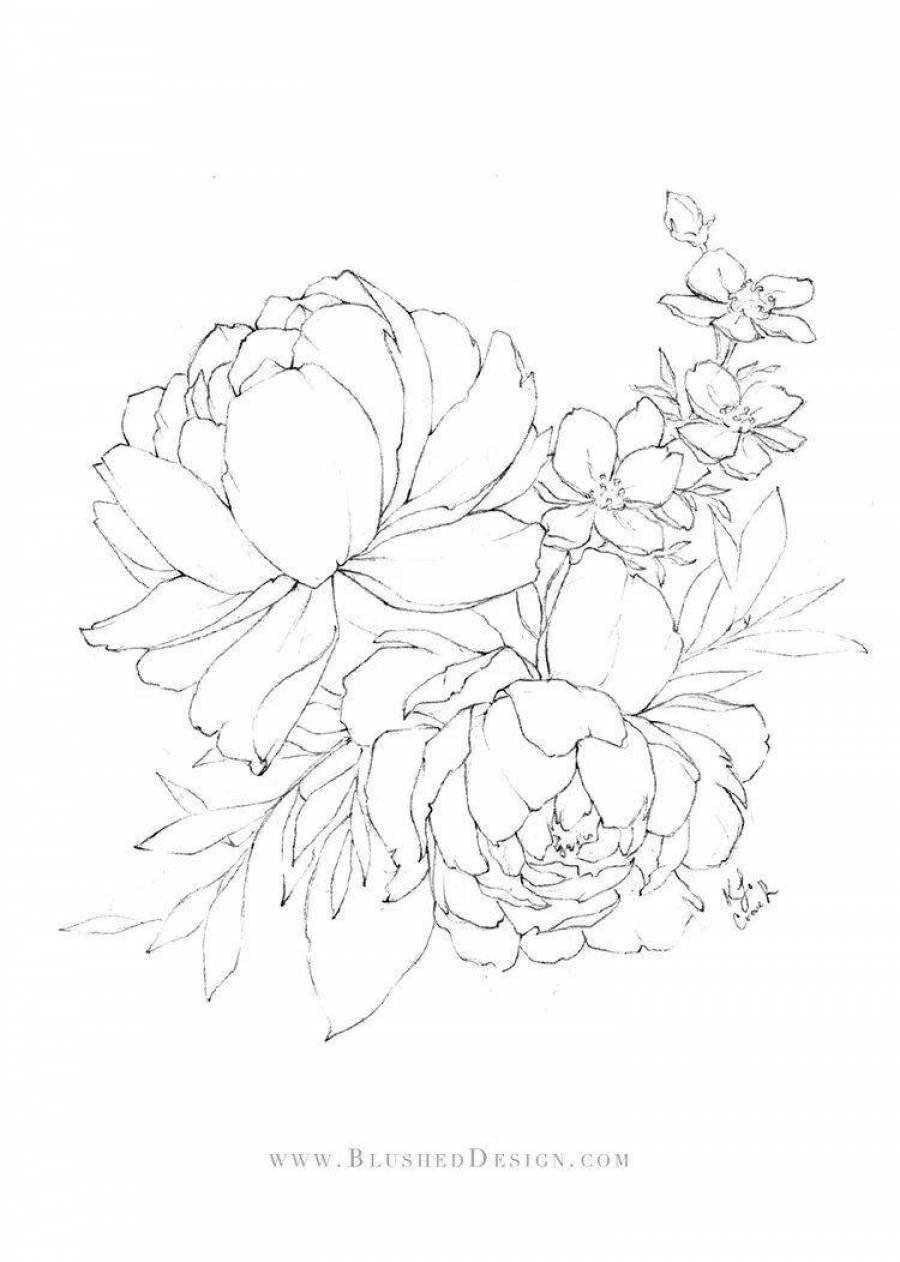 Пионы раскраска