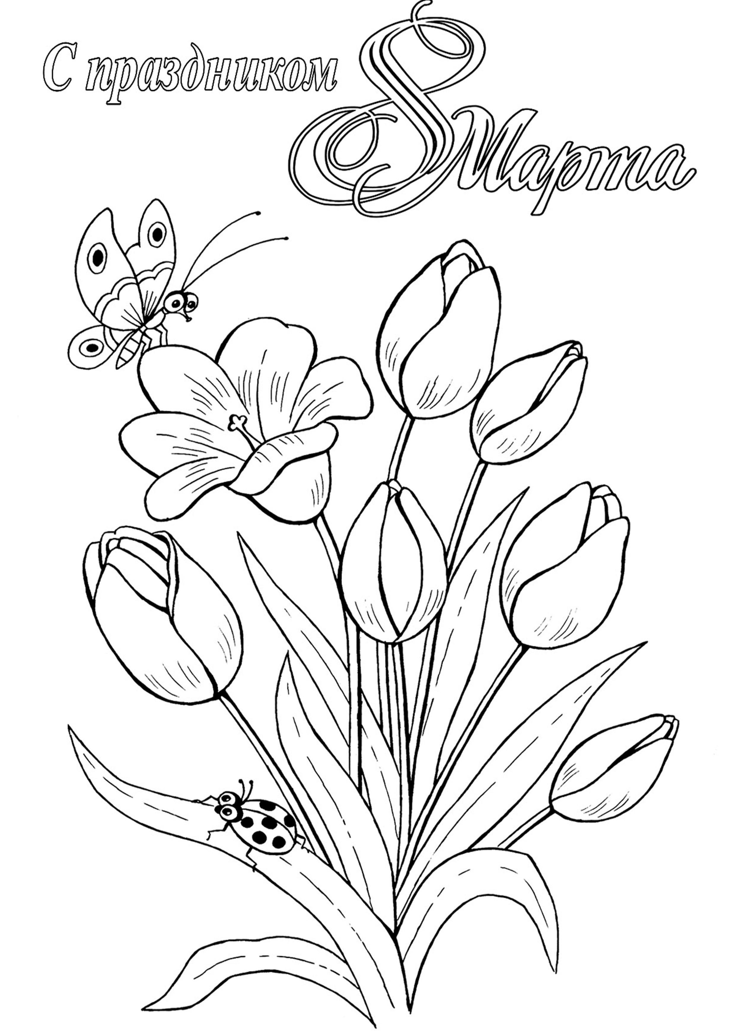 Открытка на 8 марта раскраска