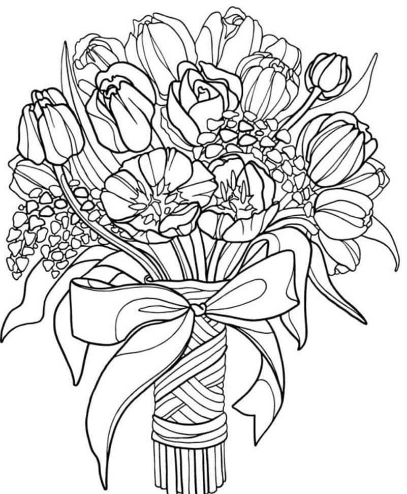 Раскраска букет для мамы на 8 марта