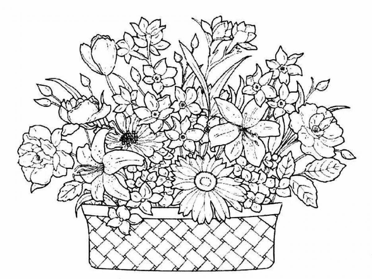 Раскраска цветы в корзине