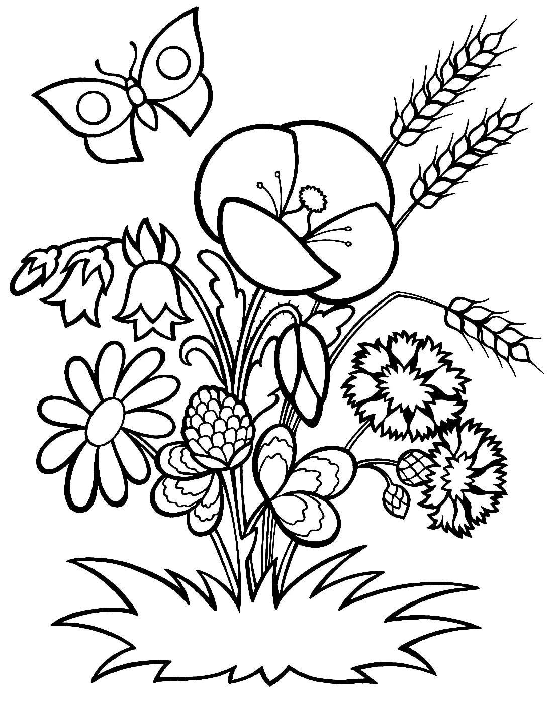 Полевые цветы раскраска