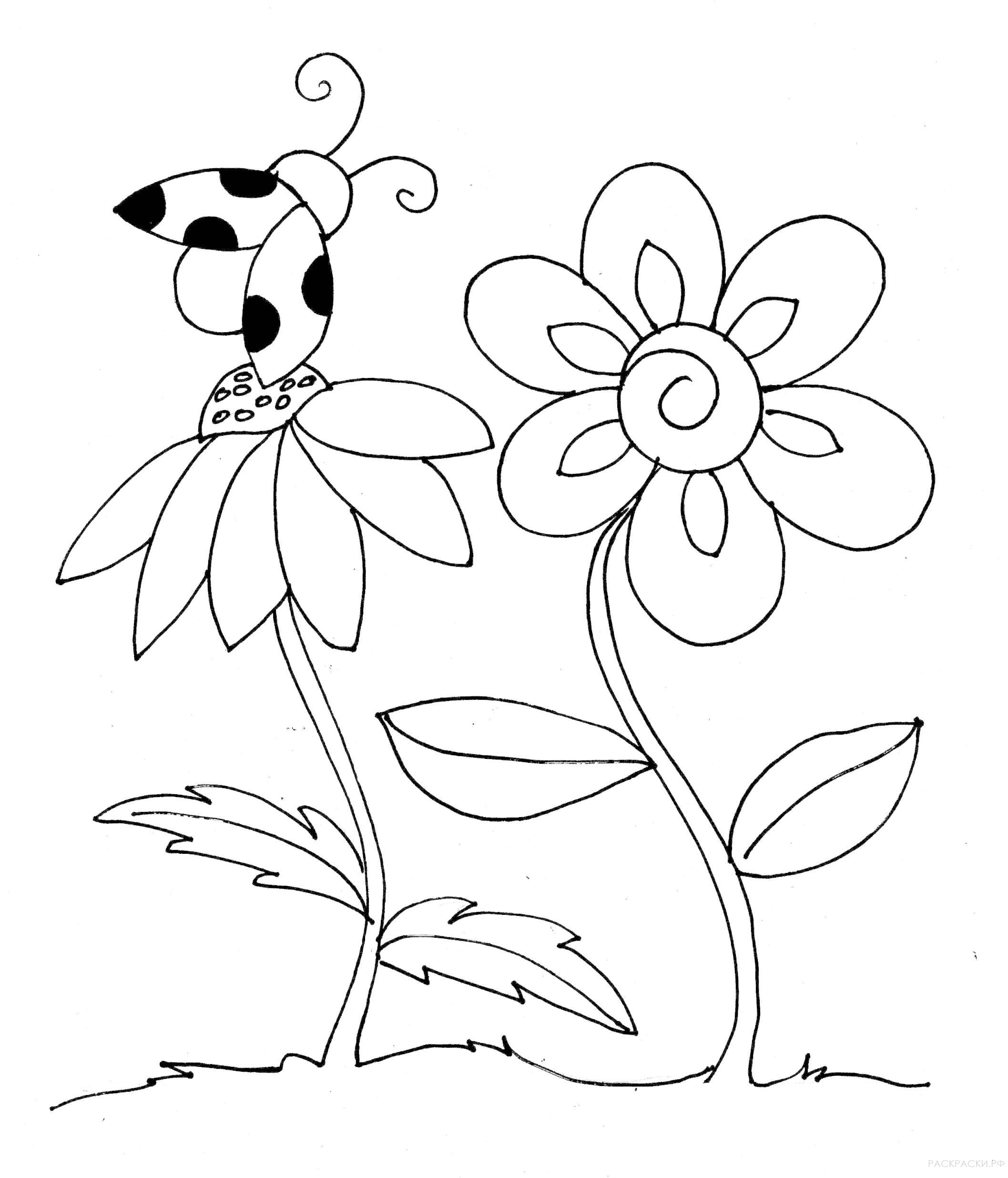 ![Раскраска Божья коровка на цветке]()