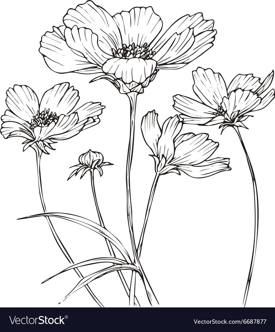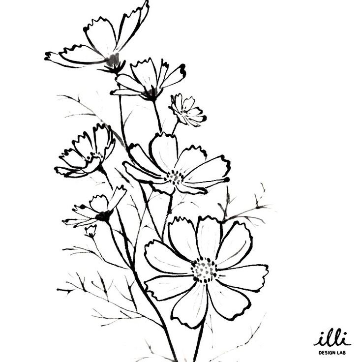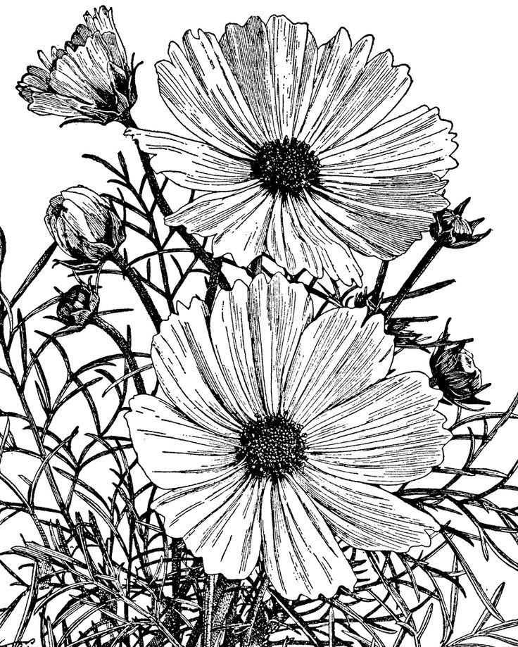 ![Космея рисование черно белая]()